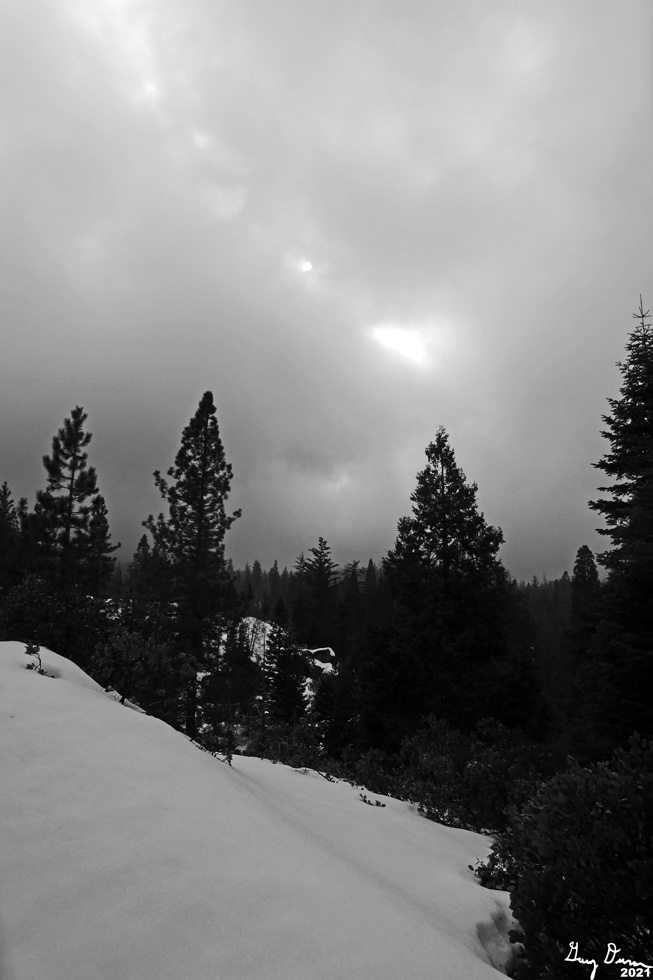 As the afternoon goes on, clouds come in, blocking the sun. It casts a subdued light on us. The forecast calls for rain/snow tomorrow, not today. Not terribly worried, still with the gathering clouds, I wonder.